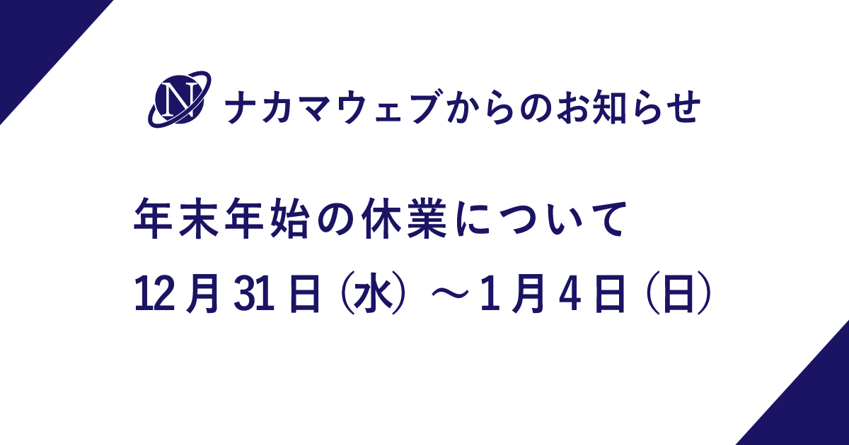誠に勝手ながら、ナカマウェブでは、以下の期間を年末年始の休業日とさせていただきます。